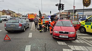 Po střetu dvou osobních vozidel v Kunovicích bylo nutné vyprostit jednu osobu
