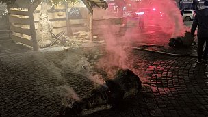 V noci z neděle na pondělí zasahovali profesionální hasiči z Kroměříže u požáru dvou slámových postav betlému na Velkém náměstí v Kroměříži.