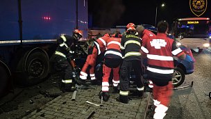 Profesionální jednotka ze Vsetína zasahuje s dobrovolnými kolegy z Karolinky ve Velkých Karlovicích. Hlášena je tam dopravní nehoda osobního automobilu s vyproštěním.