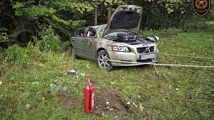 V Hutisku-Solanci na Vsetínsku skončilo auto mimo silnici, velitel musel povolat vyprošťovací automobil